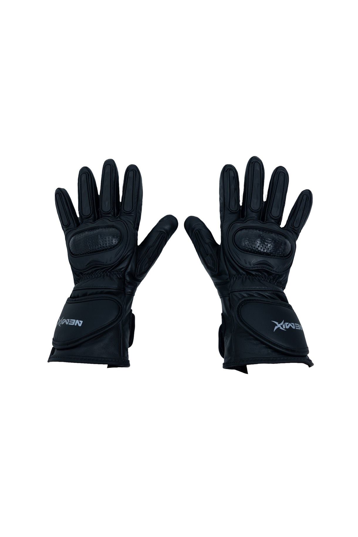 Diseño de caña larga para mayor cobertura. Cuero 100%, protección en puntos clave, forro de peluche, impermeabilidad del 98% y plumilla limpiavisor integrada.